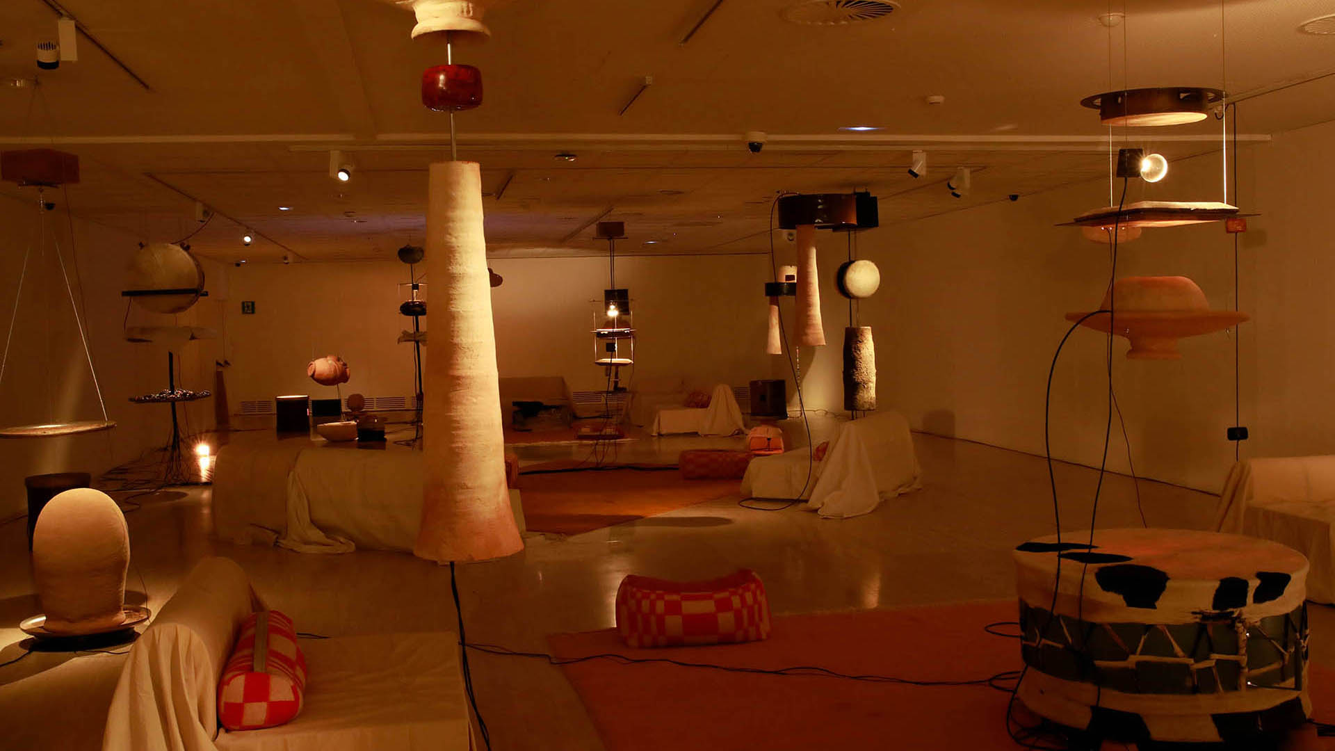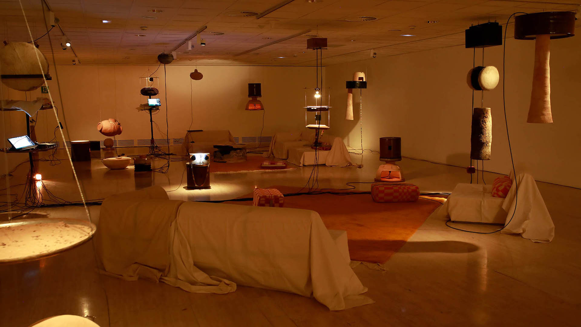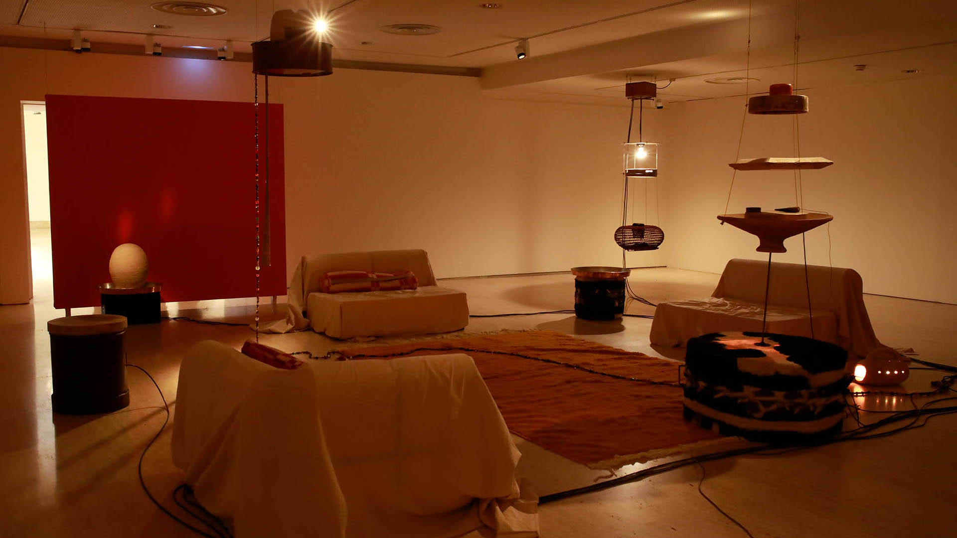 Listening spaces with custom-made furniture, pottery, textile, minerals, and musical instruments from the Atlas region, Morocco; sounds from the Atlas region and beyond