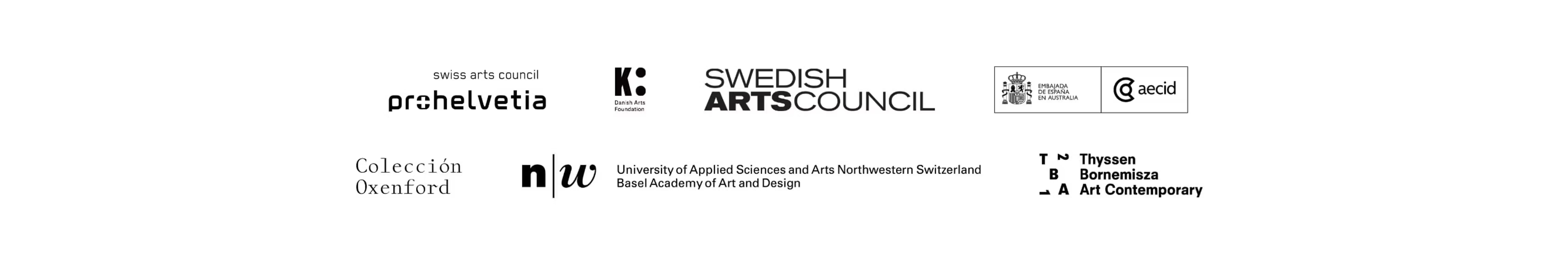 The exhibition is supported by Pro Helvetia: Swiss Arts Council, Danish Arts Foundation, Swedish Arts Council, Embassy of Spain in Canberra, Oxenford Collection, Institute Art Gender Nature, Basel Academy of Art and Design FHNW and TBA21 Thyssen-Bornemisza Art Contemporary.